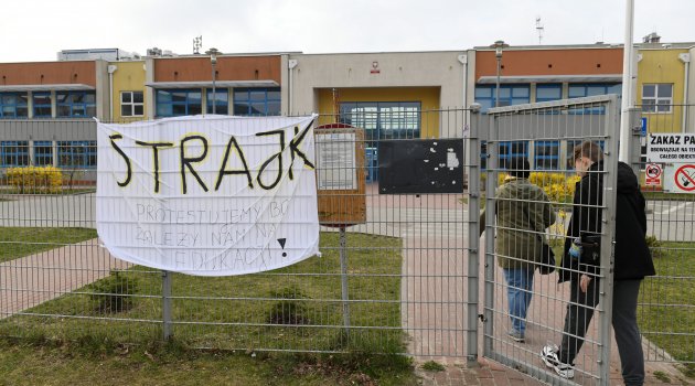 Polonya'da hükümetle öğretmen sendikaları arasında çalışma koşullarının iyileştirilmesine ilişkin görüşmelerin olumsuz sonuçlanması üzerine öğretmenlerin 8 Nisan Pazartesi günü başlattığı grev sürüyor. Sendikalara göre ülke çapında yüzde 78, Polonya Milli Eğitim Bakanlığı verilerine göre ise yüzde 48,5 katılımın olduğu grev neticesinde Polonya'da geçtiğimiz Pazartesi gününden bu yana binlerce okulda ders yapılmıyor. Sendikalar en düşük öğretmen maaşının bin 800 zloty (430 Euro) olduğu ülkede maaşlara bin zloty zam yapılmasını, eğitim bütçesine daha fazla pay aktarılmasını, talep ederken, hükümet ise yüzde 10'u Eylül ayından geçerli olmak üzere 2019 yılı için maaşlara toplamda yüzde 15'lik zam önerdi.