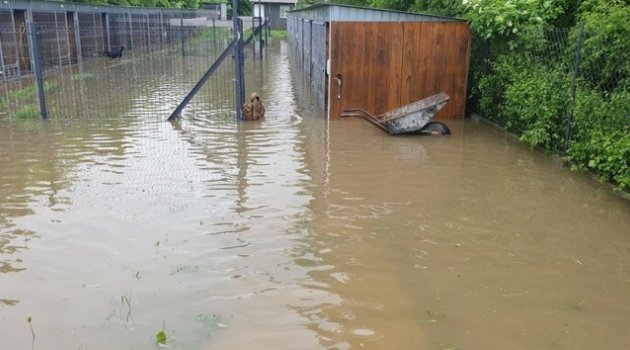 Bir süredir Polonya'da etkisini gösteren sağanak yağışlar sonrası bir çok derenin taşması sonucu ev ve iş yeri sular altında kaldı. Wadowice'de de bir nehirin taşması sonucu barınaklarına su basan 50 köpek vatandaşların yardımıyla kurtarıldı.