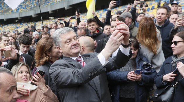 Ukrayna Devlet Başkanı Petro Poroşenko, devlet başkanlığı seçimlerindeki en büyük rakibi komedyen Vladimir Zelenskiy ile halkın önünde tartışacağı Kiev Olimpiyat Stadı'na gelerek rakibini bekledi. Zelenskiy'in stada gelmemesi üzerine Poroşenko kısa bir miting düzenledi. Poroşenko, düzenlediği basın toplantısının ardından vatandaşlarla resim çektirip stadyumdan ayrıldı.
