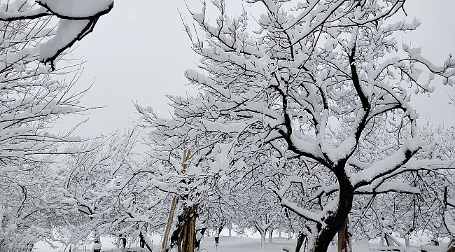 Kar yağışı ile birlikte beyazla kaplanan kayısı bahçeleri ise kartpostallık görüntüler oluşturdu.
