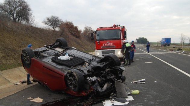 Tekirdağ'ın Malkara ilçesinde refüje çarpan otomobil takla attı. Kazada 2 kişi yaralandı.