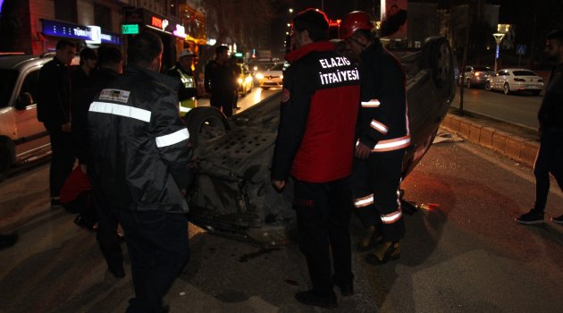 Elazığ’da refüje çarparak takla atıp ters dönen otomobilde bulunan 2 kişi yaralandı.