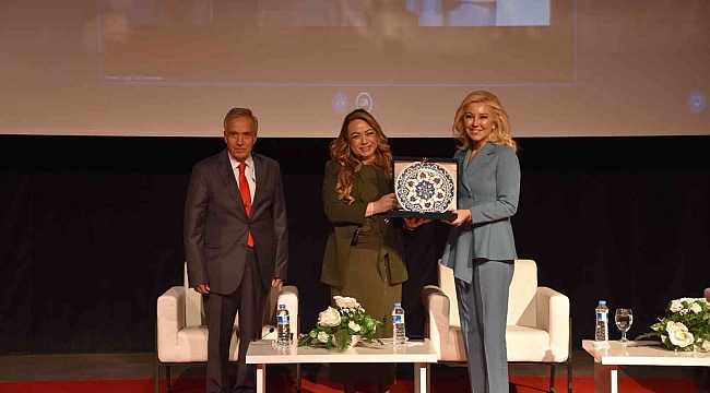 Şebnem Bursalı Malatya ve bölgenin tarihi ve coğrafi özelliklerine değinerek, şu ifadeleri kullandı: "Malatya'ya indik soğuk Ankara'dan sonra burası daha sıcak geldi. Ankara daha soğuktu ama tabi sadece havanın sıcaklığı değil insanın sıcaklığı insan sıcaklığıyla sarmalandık çok teşekkür ediyorum. Sayın hocamın da hem şahsı hem ailesi ve üniversite ailesi bizi gerçekten sıcacık kucakladılar. Malatya olarak çok şanslısınız yani burada doğmuş büyümüş olanlar ya da buraya sonra gelenler adına söylüyorum çünkü çok şanslısınız tarihiye de çok özel bir yer bulunduğumuz yer. Anadolu'nun medeniyetlerin buluştuğu yer, dediniz hocam gerçekten çok özel bir şehir Malatya, aynı zaman da iki Cumhurbaşkanı çıkarmış, siyasette yeri olmuş şehirdesiniz. Kentler tarihiyle, kültürüyle, sanatıyla var olurlar ve başka nesilde de sonsuza kadar yaşarlar."