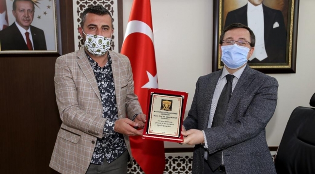 Ziyaretin sonunda dernek başkanı Kaya tarafından, Rektör Kızılay'a onursal üyelik plaketi takdim edildi.