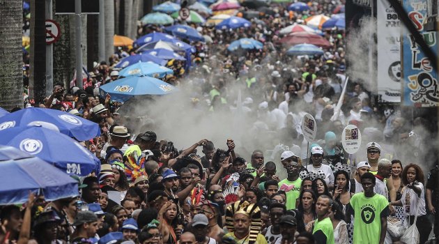 Brezilya'nın Rio de Janeiro kentinde tüm dünyanın beklediği karnaval, bu yıl şiddetli yağış nedeniyle bir gün geç başladı. 9 Mart’a kadar sürmesi beklenen karnavalda rengarenk geleneksel kostümlü sambacılar, devasa maketler ve davullar eşliğinde yağmurun altında Rio sokaklarında gösteri düzenledi. Gösteriye geleneksel kahramanların kostümlerini giyen binlerce kişi katıldı. Gösteriye katılan davulcu Evelyn Bastos, “Siyahilerin ve özellikle kadınların cesaretini anlatıyoruz. Böylece Brezilya’nın gerçek kurucularının kim olduğunu gösteriyoruz” dedi.