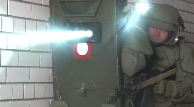 Rusya Savunma Bakanlığı tarafından yayınlanan görüntülerde ise en çok dikkat çeken detay düşmanı etkisiz hale getiren askeri silahlar oldu. Geçtiğimiz ay testlerinin başarıyla tamamlandığı açıklanan ışıklı silahlar bu tatbikatta kullanıldı. Askerlerin silahlarında ve kalkanlarında kullanılan ışıkların en önemli özelliği düşman askerinin ilk bakış anında gözleri kör etmesi ve ve bu silahların etkisine maruz kalan düşman askerinin halüsinasyon görmesine sebep olması. Askerler tatbikatta bir meskene operasyon yaparak bu silahları kullandı. Tatbikatın son bölümünde yer alan ışıklı silahlar ilk kez bir kullanılarak tüm dünyaya tanıtılmış oldu.