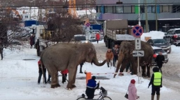 Rusya’nın Ekaterinbug şehrinde sirkten kaçan 2 fil şehir merkezine doğru yürümeye başladı.