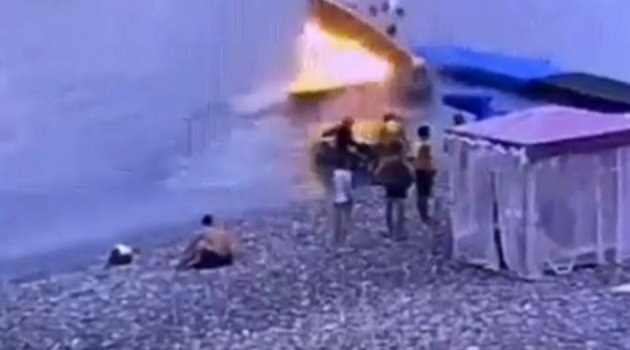 Rusya’nın Karadeniz’e kıyısı olan tatil şehri Soçi’de bir sürat teknesinde iskeleye yaklaşırken patlama oldu. Sürat teknesinin motorunda meydana gelen patlamanın ardından kaptan denize atladı. Patlamanın etkisiyle alev alan teknenin büyük bir kısmı yandı. Teknenin kaptanı ise kazadan yara almadan kurtuldu.