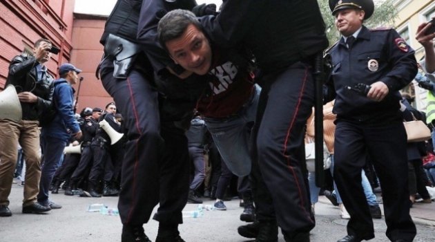 Rusya'nın başkenti Moskova'da 8 Eylül'de yapılacak yerel seçimler öncesi binlerce kişi Duma meclisi önünde protesto gösterisi düzenledi. Rusya Devlet Başkanı Vladimir Putin'e muhalif kişilerin belediye meclis üyeliği adaylıklarının kabul edilmemesi nedeniyle başlayan protesto gösterilerine polis müdahale etti. Yerel kaynaklar tarafından yapılan açıklamaya göre polisin müdahalesi sonucu 25 kişi gözaltına alındı.