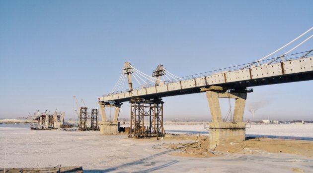 Rusya ile Çin’i birbirine bağlayacak olan demiryolu hattının en önemli kısmı olan demiryolu köprüsünün son parçaları bu hafta içi monte edilecek.
