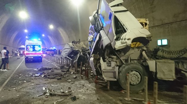 Kaza sonucu tünel adeta savaş alanına döndü. Kazada ikisi ağır 5 kişi yaralanırken, tünel trafiğe kapandı.