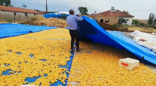Tonlarca kayısının yağmurdan etkinlendiği olay sonrasında kayısı üreticileri yetkililere çağrıda bulunarak yardım istedi.