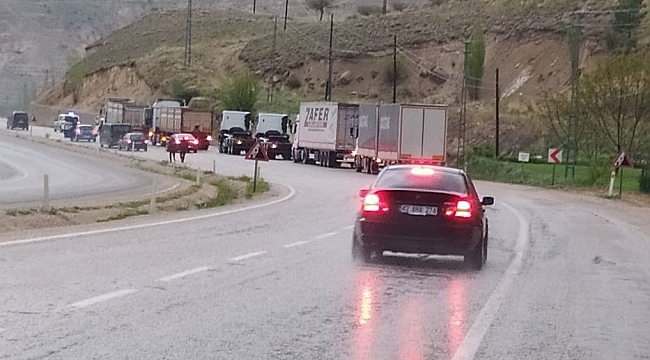 Sivas’ın Gürün ilçesinde etkili olan dolu ve sağanak yağış taşkınlara neden oldu, Sivas-Malatya karayolu bir süre araç ulaşımına kapandı.