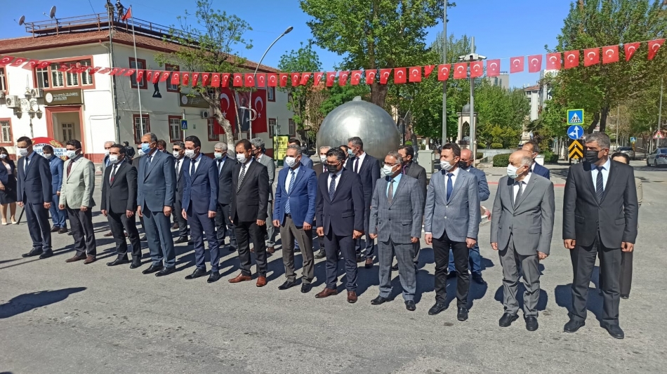 İlçe Hükümet Konağı önünde, Atatürk Anıtına çelenk konulması, saygı duruşu ve İstiklal Marşının okunması ile 23 Nisan kutlama töreni sona erdi.