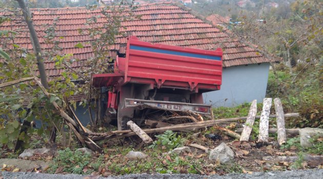 Olay, Çatalağzı beldesine bağlı Kırımsa Mahallesi Karaelmas Sokak'ta meydana geldi. 67 ED 825 plakalı kamyonet, rampada park halindeyken freninin boşalması sonucu hızla yokuş aşağı ilerlemeye başladı. Hızla ilerleyen kamyonet, sokağın altındaki İsmail Altunay'a ait evin salonunun duvarına çarparak durabildi. Kaza sırasında evde soba ile uğraşan 45 yaşındaki Nuran Altunay, duvarın altında kaldı. Uyuduğu sırada gürültüyü duyarak yataktan kalkan İsmail Altunay, eşini duvarın altında görünce şok yaşadı. Eşini duvarın altından çıkaran Altunay, özel araçla eşini komşularının yardımıyla Zonguldak Atatürk Devlet Hastanesine kaldırdı. Nuran Altunay'ın durumunun iyi olduğu öğrenildi.