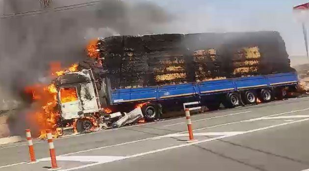 Araçta bulunan tonlarca samanın alev alması ile alev topuna dönen tırı çevredeki sürücüler korkulu gözlerle izledi. Karayolunun bir süreliğine çift taraflı trafiğe kapandığı olay yerine gelen itfaiye ekipleri yangına müdahale etti. Alevlerin yolun kenarındaki tarlaya da sıçramasıyla bölgeye takviye itfaiye ekipleri yönlendirildi.