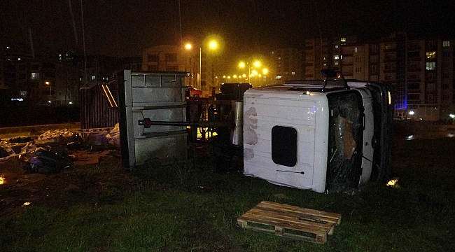 Kamyondan savrulan inşaat malzemeleri yola saçıldı. Kazada yaralanan kamyon sürücüsü İlyas Poyraz 112 ekipleri tarafından ambulansla özel bir hastaneye kaldırılarak tedavi altına alındı. Kazayla ilgili soruşturma başlatıldı.