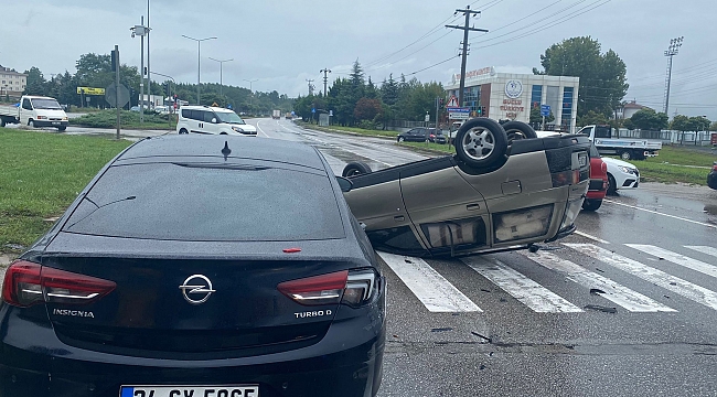 Yağış dolayısıyla kayganlaşan zeminde durmakta zorlanan otomobil, aynı istikamette trafik ışıklarında bekleyen 07 NZS 34 ve 34 SY 5965 plakalı otomobillere çarptıktan sonra takla attı. Takla atan otomobil sürücüsü kazayı ufak sıyrıklarla atlattı.