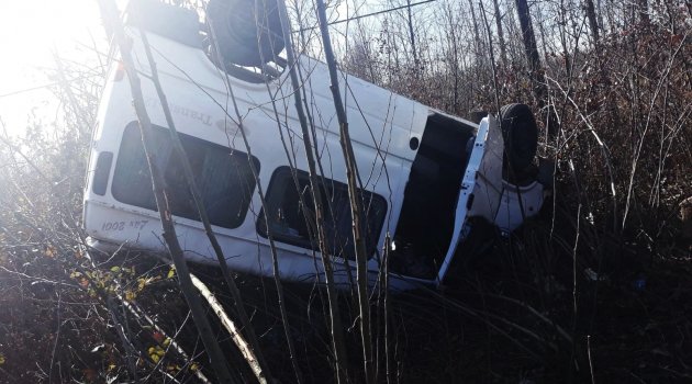 Samsun'da meydana gelen trafik kazasında fındık bahçesine yuvarlanan minibüste bulunan 2 kişi yaralandı.