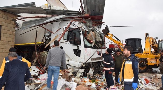 Edinilen bilgiye göre kaza, Viranşehir-Mardin karayolu Anıt (Kerme) kırsal mahallesinde meydana geldi. Mardin istikametine seyir eden Çetin T. yönetimimdeki 38 JK 095 plakalı tır, kontrolden çıkarak yol kenarındaki markete daldı.