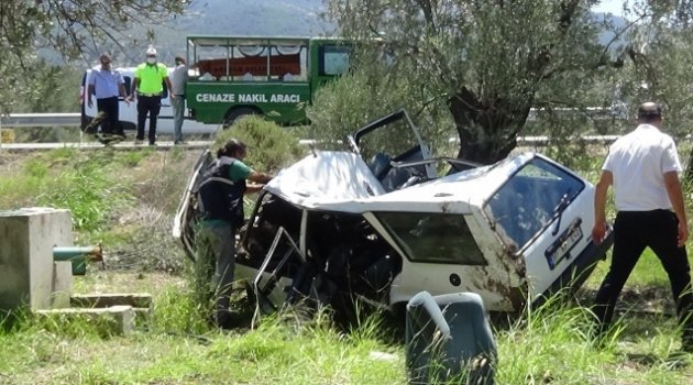 Şarampole uçup zeytin ağacına çarpan otomobil 2 kişiye mezar oldu