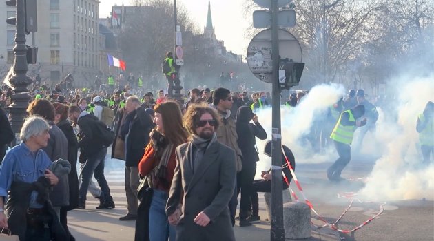 Hükumetin ekonomi politikalarına karşı başlatılan ve Fransa Cumhurbaşkanı Emmanuel Macron'un istifasının talebine kadar uzanan Sarı Yeleklilerin gösterileri devam ediyor. Sarı Yelekliler, eylemlerinin 14’üncü haftasında başkent Paris’in caddelerinde gösterilerini sürdürdüler. Sarı Yeleklilerin hedefinde Milli Meclisin kapısına dayanmak istediklerini bilen polis, Meclise ulaşım yollarını çelik perdelerle kapattı. Akşamüzeri Cumhuriyet Meydanı'ndaki buluşmalarını engelleyen polis, Sen Nehri üzerindeki köprüleri de kapattı. Başkentin birden çok metro istasyonu da hizmet dışı kaldı.