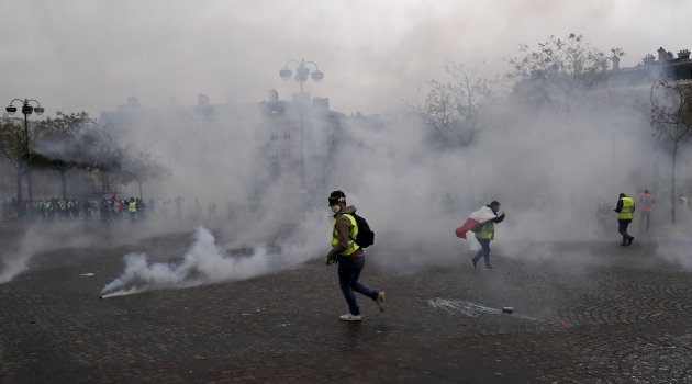 Fransa'da Cumhurbaşkanı Emmanuel Macron hükümetinin akaryakıt fiyatlarına getirdiği zamları eleştiren Sarı Yelekliler’in başkent Paris’te şiddetli protestolarına devam ettiği öğrenildi. Protestolar esnasında polis biber gazı ve tazyikli su kullanırken, eylemciler ve polisler arasında sık sık çatışmalar yaşandığı kaydedildi. Göstericilerin özelikle Şanzelize Caddesi'nin batı kısmında yer alan Zafer Takı çevresinde toplandığı da belirtildi.