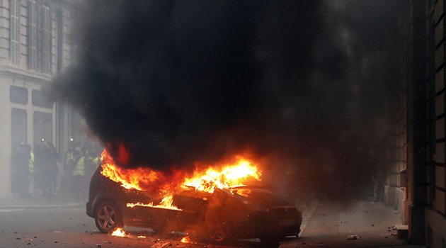 Sarı Yelekliler Paris sokaklarını ateşe verdi