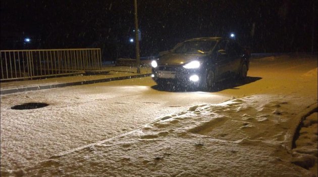 Kar yağışının aralıklarla devam ettiği Sarıkamış’ta trafik ekipleri de sürücüleri dikkatli olmaları konusunda uyardı.