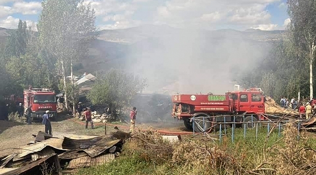 Sarıkamış’ta çıkan yangında ev, ahır, samanlık ve odunluk yandı.
