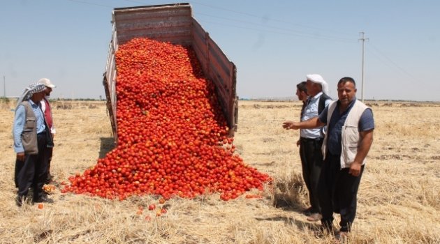 Diyarbakır’da domates üreticisi bir çiftçi, fiyatı ucuz olduğu için satamadığı tonlarca domatesi hayvanlara yem olması için tarlaya döktü.