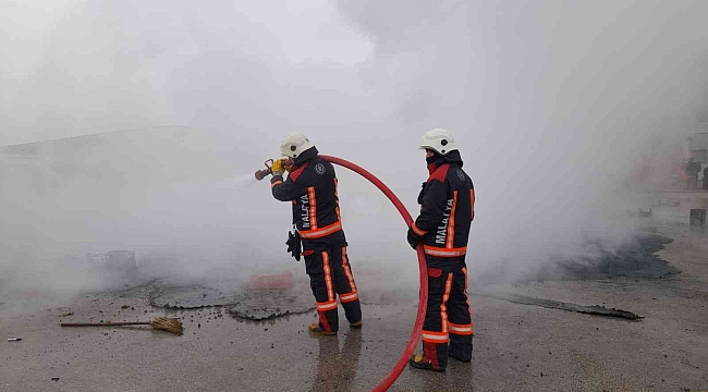 Malatya'da sebze ve meyve halinde çıkan yangında alevler gökyüzünü sardı. Yangın büyümeden kontrol altına alınırken, maddi hasar meydana geldi.