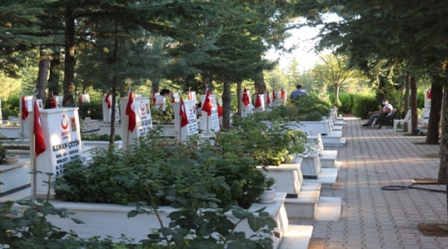 Her bayram olduğu gibi bu bayramda gözyaşı ve özlemin olduğu şehitlikte, şehit yakınlarının buruk bayramlaşması yaşandı.