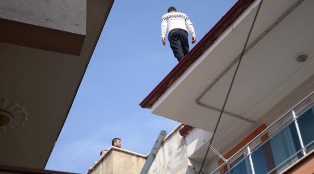 Denizli’de eşini ve çocuklarını evine görmeye gelen cezaevi firarisi, polis ekiplerinin gelmesi üzerine çatıya çıkarak kaçmaya çalıştı.