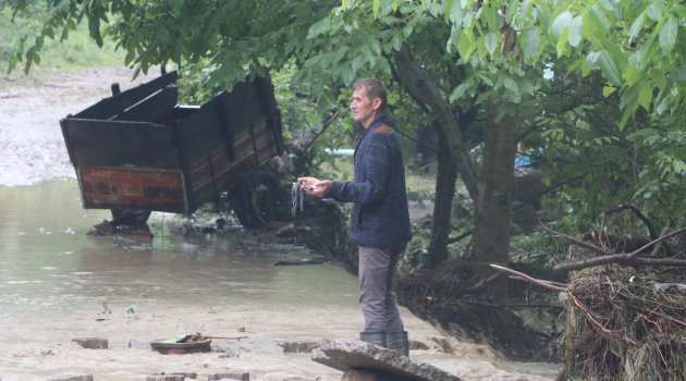 Bartın’ın Hasankadı beldesinde etkili olan şiddetli sağanak yağış sonrası medyana gelen sel felaketinde kaybolan oğlunu arayan babanın dere yatağında arama yapması yürekleri burktu.