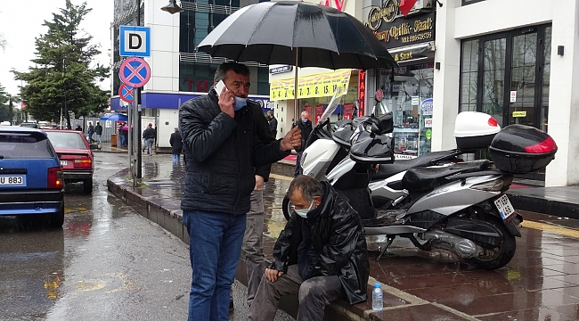 Zonguldak’ın Ereğli ilçesinde yolun karşısına geçerken otomobilin çarptığı şahıs yaralandı. Otomobilde yolcu olarak bulunan bir kişi, yaralanın ıslanmaması için şemsiyeyle başında bekledi.
