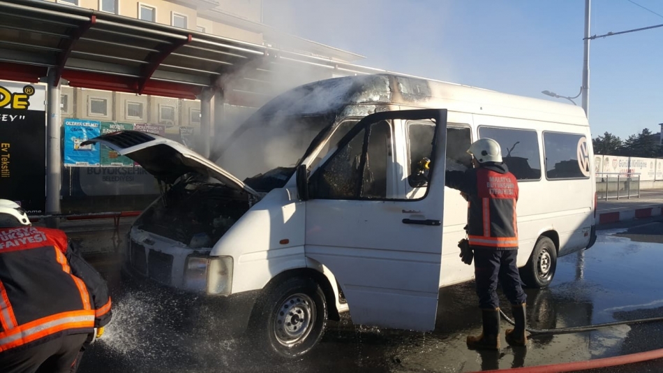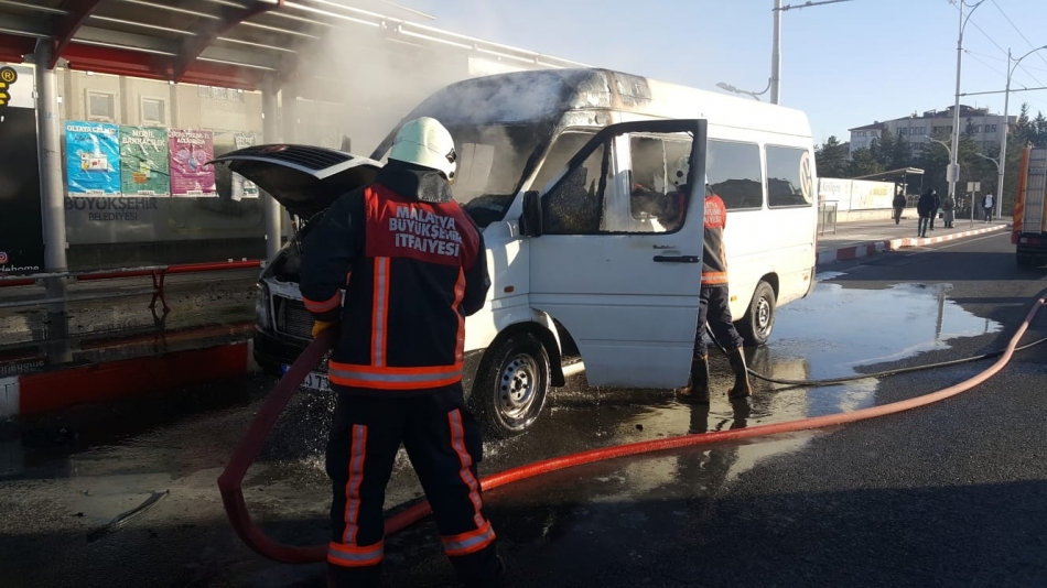 Malatya’da çevreyolu üzeri İstasyon kavşağında yaşanan olayda bir minibüs yanmaya başladı. Sürücünün durumu fark ederek araçtan çıkması ile birlikte alevler tüm minibüsü kaplarken, o anlar da olay yerinden geçen vatandaşlarım cep telefonuna yansıdı.