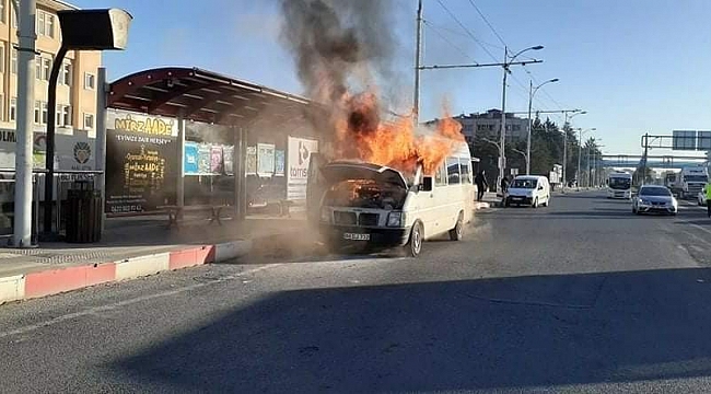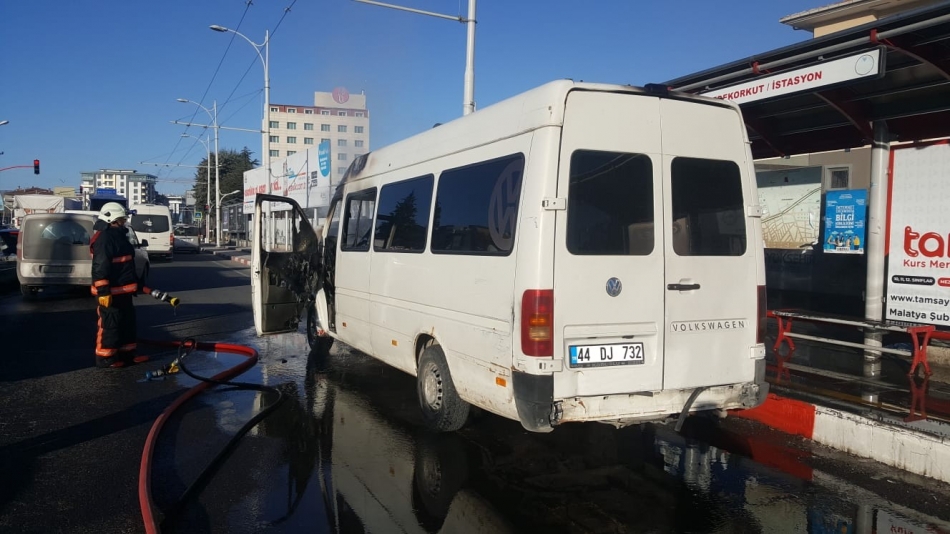 Malatya'da seyir halindeki bir minibüs alev aldı. Trafikte yaşanan panik anları ise vatandaşların cep telefonu kamerasına yansıdı.