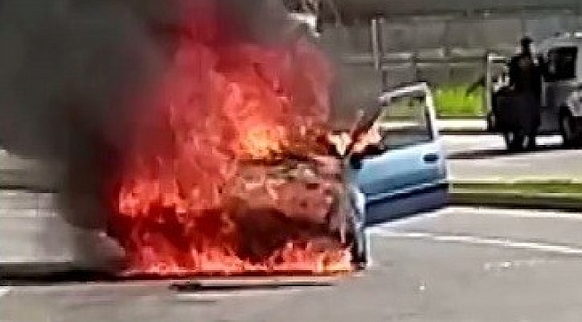 Sosyal medyada da yer alan görüntülerde, alevler arasında kalan otomobilin tamamen yanarak kullanılmaz hale geldiği görülürken, yangın, itfaiye ekiplerinin müdahalesiyle söndürüldü.