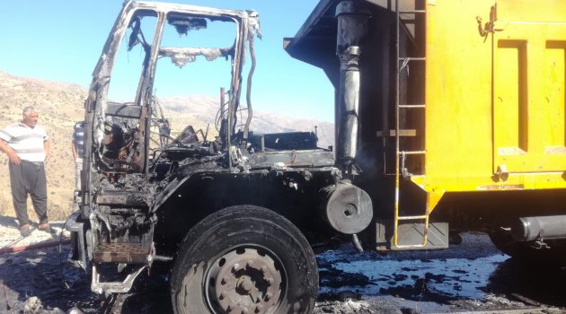 Malatya'da seyir halinde iken aniden yanmaya başlayan kamyon kullanılmaz hale gelirken, olayı fark edip zamanında araçtan çıkan sürücü kazadan yara almadan kurtuldu.