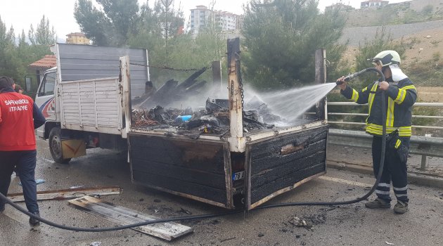Edinilen bilgiye göre, Safranbolu Kireç kuyusu mevkisinde Mert Ş. idaresindeki 78 AAH 520 plakalı kamyonetin kasasında bulunan atık malzemeler bir anda alev aldı. Durumu fark eden diğer sürücülerin uyarısının ardından araç sürücüsü yangını fark etti. Sürücü aracını kenara çekerek durumu itfaiye ekiplerine haber verdi. Karabük ve Safranbolu Belediyesi'ne ait itfaiye ekipleri kısa sürede olay yerine gelerek yangını söndürdü.