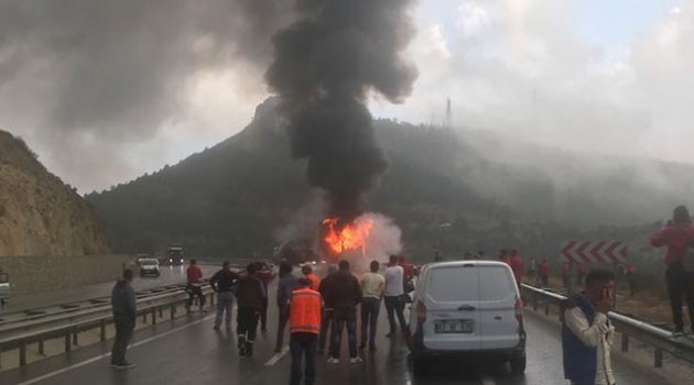 Seyir halindeki otobüs alev alev yandı!