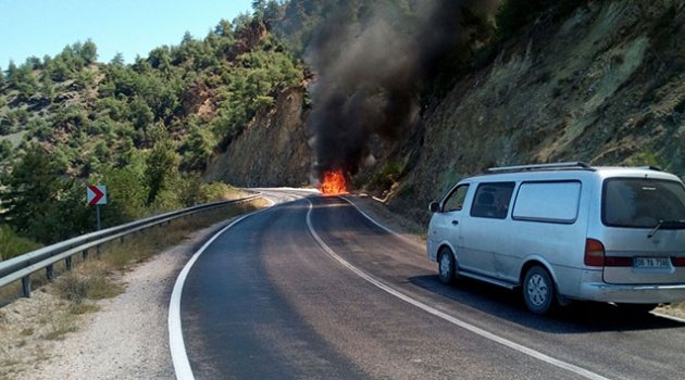 Seyir halindeki otomobil alev alev yandı...