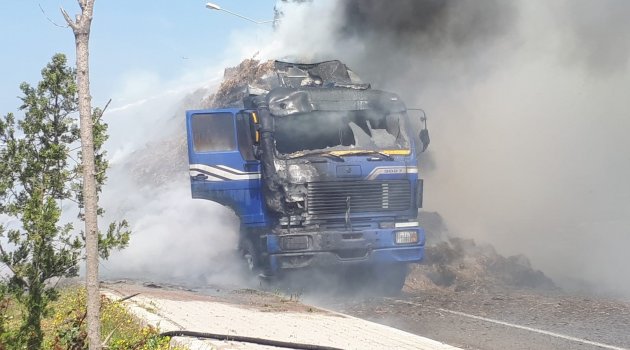 Seyir halindeki saman yüklü tır alev topuna döndü