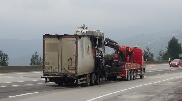 Edinilen bilgiye göre, Hatay’ın Belen ilçesi Kıcı mevkiinde seyir halinde olan tır bir anda alev aldı. Yanında ilerleyen araçların korna çalmasıyla durumu fark eden 31 D 51 plakalı tır şoförü Sedat Eşer (30), aracı kenara çekerek kendini son anda dışarı attı. İtfaiye ekipleri gelene kadar ilk müdahaleyi vatandaşlar yapsa da yangın söndürülemedi. Olay yerine gelen itfaiye ekipleri tarafından söndürülen yangının ardından, tır kullanılamaz hale geldi.