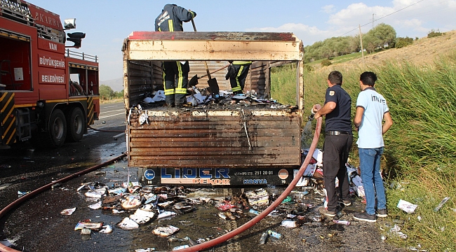 Daha sonra durumu itfaiye ekiplerine haber vermesiyle Van Büyükşehir Belediyesi İtfaiye Daire Başkanlığı'na bağlı Muradiye Grup Amirliği ekipleri kısa sürede olay yerine gitti. İtfaiye ekipleri tarafından yangın büyümeden güçlükle söndürüldü. Dorse içerisinde bulunan kırtasiye malzemeleri yanarak kül oldu.