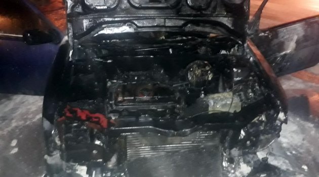 Kullanılamaz hale gelen araçta çıkan yangının sebebi belirlenemezken, aynı otomobilde 6 ay önce yine yangın çıktığı öğrenildi.