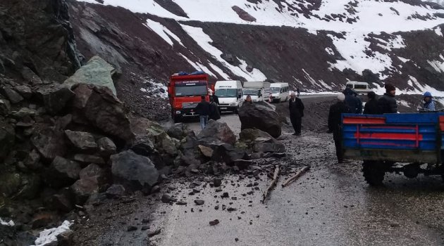 Daha sonra vatandaşlar kamyon yardımı ile kaya parçasını iterek yolu tek şeritten ulaşıma açtı. Vatandaşlar yolun tamamen açılması için Karayolları ekiplerine bilgi verdi.