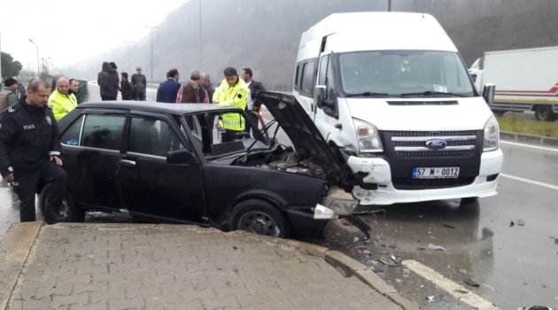 Sinop'ta okul servisi ile otomobil çarpıştı: 2 yaralı
