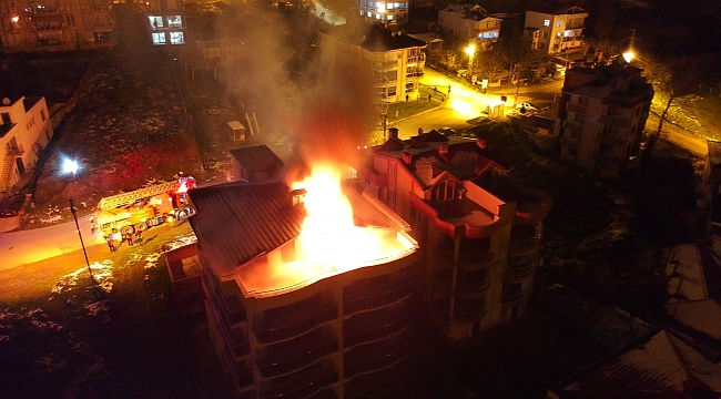 Edinilen bilgiye göre, saat 21.45 sıralarında Yakamoz Sokak üzerinde bulunan 4 katlı pansiyonda şömineden kaynaklı yangın çıktı. Binanın çatı katının tutuşması sonucu bina alev topuna döndü.
